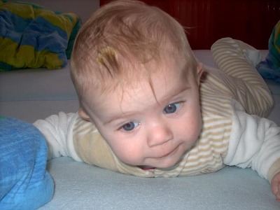 Erste Krabbel- Versuche. Allerdings funktioniert noch nicht die Koordination zwischen Händen und Füßen
